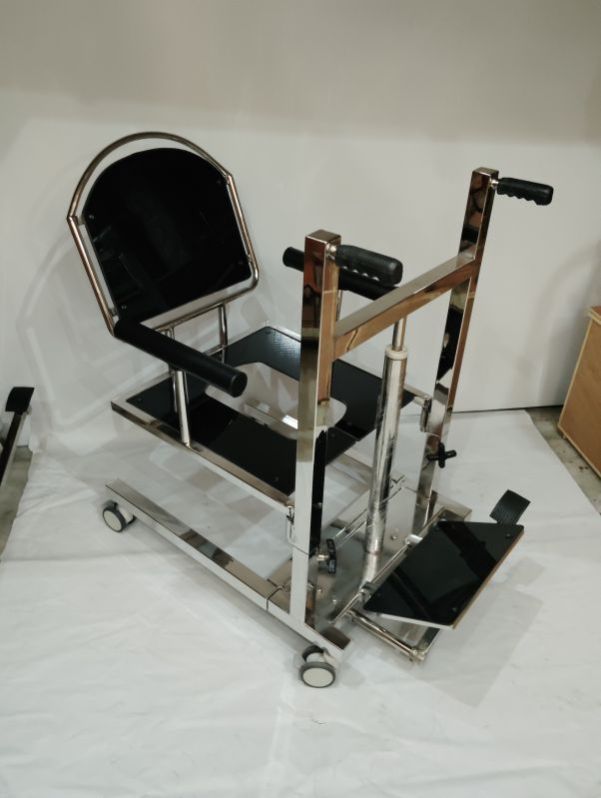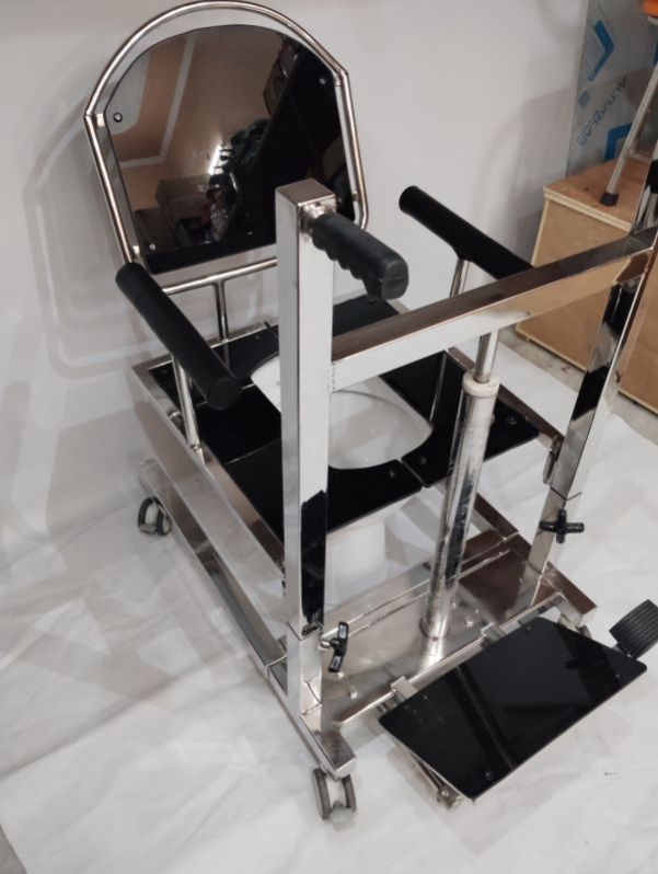 MULTIPURPOSE:-Mangalam Stainless Steel patient Lifting and Transfer Chair Model- VIRAAJO-2 (Export) is with multiple functions 4 in 1. (1) Shifting from Bed to Commode Sheet .(2) Bed to Shower (3) Bed to Dining Chair (4) Bed to Sofa Set . We can lift the up down function with Hydraulic pump operated by foot paddle.